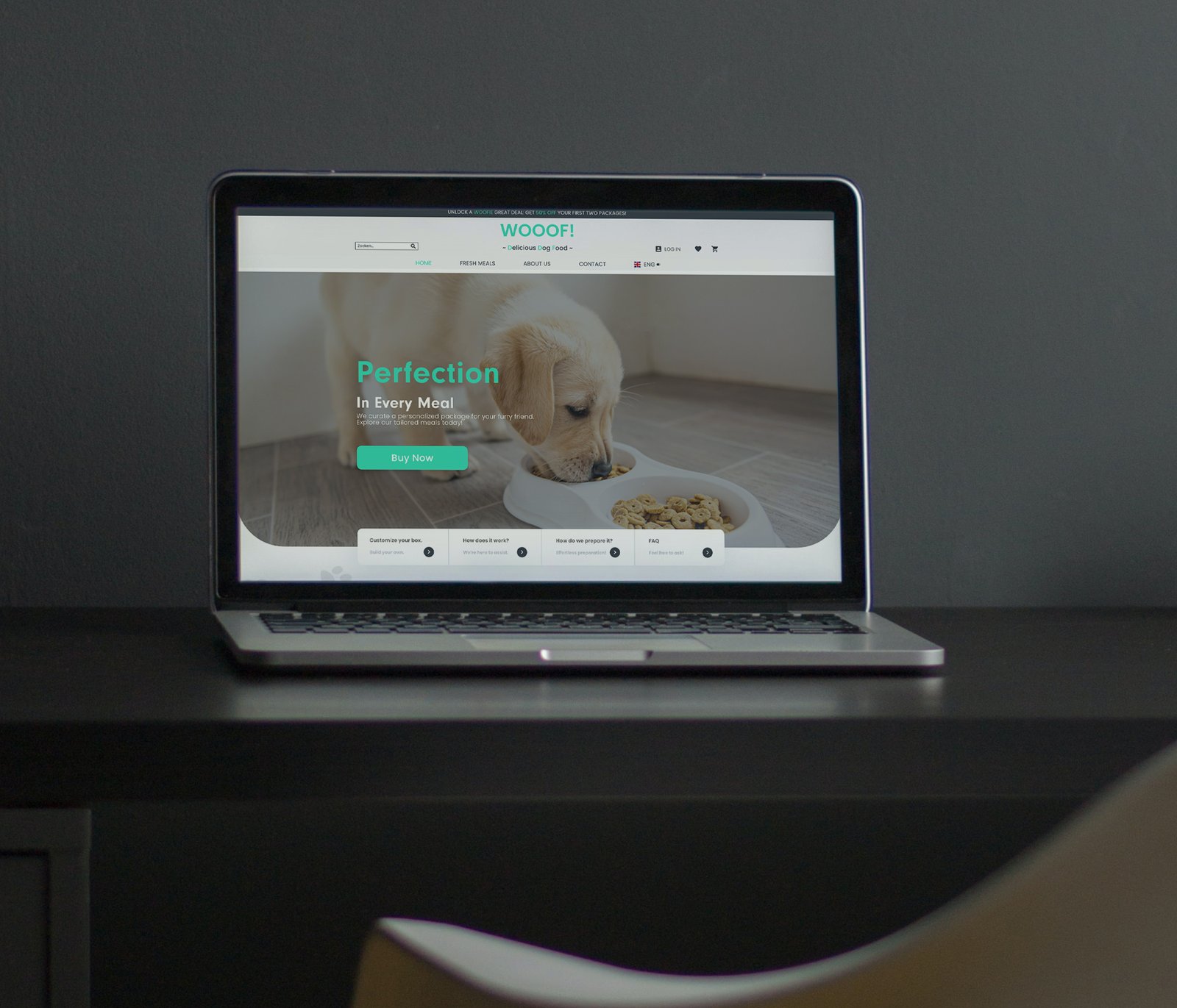 Als uitgangspunt koos ik voor een remake van de originele website van Butternut Box, een merk dat verse hondenvoeding op maat aanbiedt. Mijn doel was om de gebruikerservaring te verbeteren op basis van de noden van potentiële klanten.